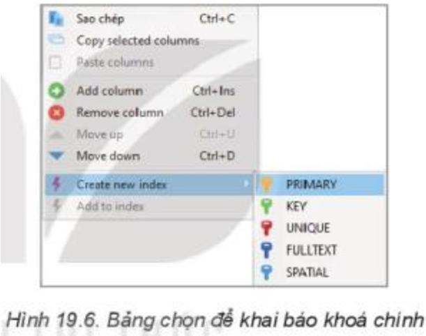 B, Thiết lập khóa chính