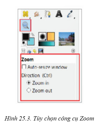 Bước 2. Chọn nút lệnh Zoom trong bảng công cụ Trong phần tùy chọn công cụ, chọn Zoom in nếu muốn phóng to, chọn Zoom out nếu muốn thu nhỏ.