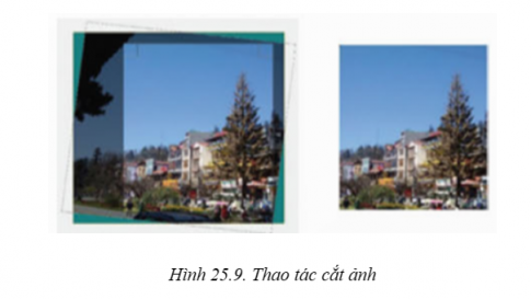 - Cắt ảnh: Chọn nút lệnh Crop , kéo thả chuột để chọn phần ảnh được giữ lại → kéo thả chuột tại các điểm trên viền khung để thay đổi phần ảnh được chọn → kéo thả các điểm bên trong khung để di chuyển ảnh gốc. Nhấn phím Enter để thực hiện cắt ảnh. Nhấn phím Esc để bỏ chọn ảnh.
