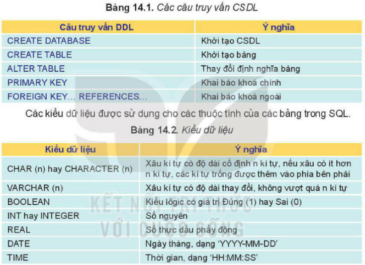 Chúng tôi xin giới thiệu bài Lý thuyết Tin học lớp 11 bài 14: SQL - Ngôn ngữ truy vấn có cấu trúc hay, chi tiết sách Kết nối tri thức sẽ giúp học sinh nắm vững kiến thức trọng tâm, ôn luyện để học tốt Tin học 11.