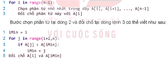 Câu 10: Mô tả thuật toán sắp xếp chọn bằng ngôn ngữ tự nhiên gồm có mấy bước?