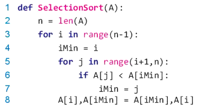 - Tại mỗi bước lặp, tìm phần tử nhỏ nhất trong dãy A[i], A[i+1], A[n-1] và đổi chỗ phần tử nhỏ nhất này với A[i].