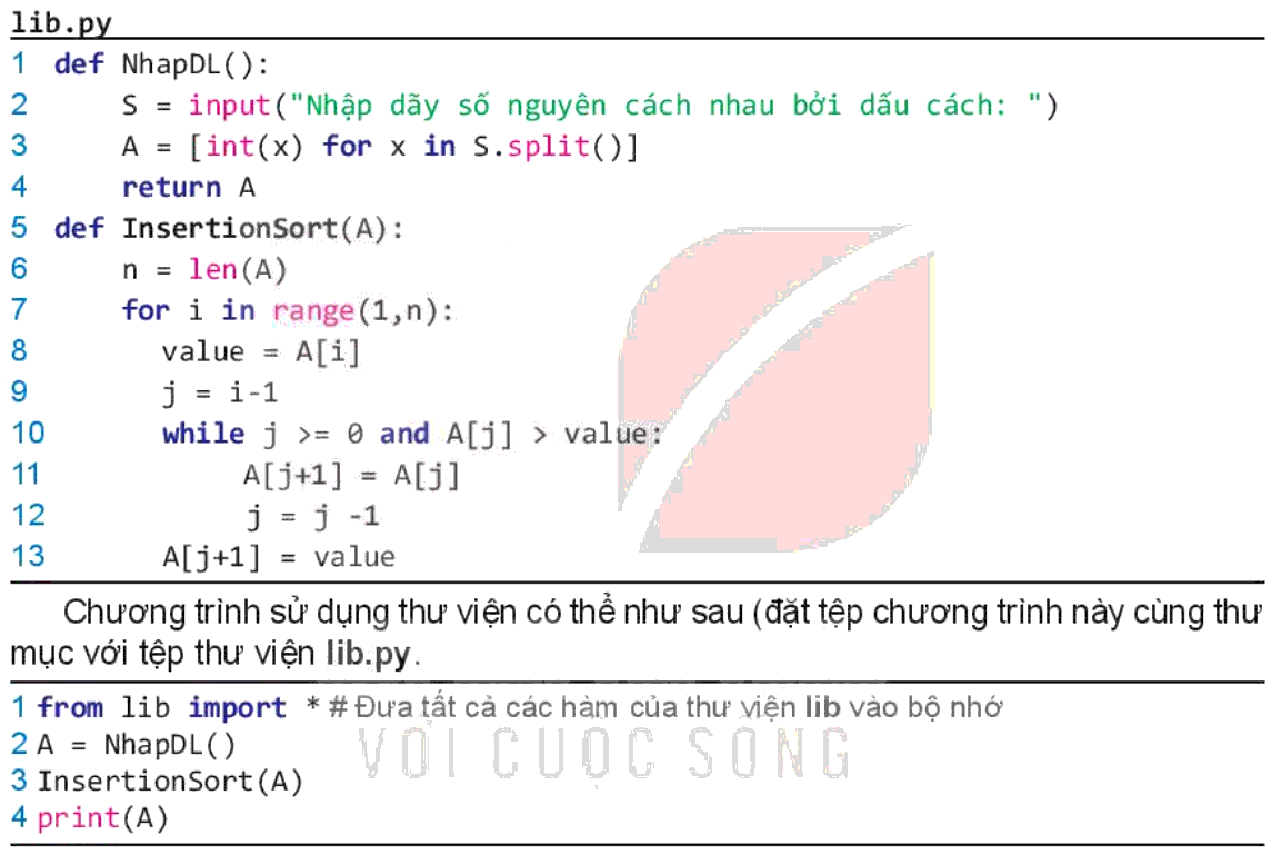 - Để thiết lập một thư viện, ta đưa các hàm chuẩn vào một tập chương trình và đặt tên của tệp này chính là tên thư viện muốn lưu trữ. Ví dụ: tập chương trình lib.py đóng vai trò như một thư viện.