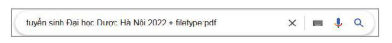 Gợi ý: Trong ví dụ tại hình trên, kết quả tìm kiếm có thể bao gồm thông báo tuyển sinh của các trường Đại học khác nữa. Để tìm chính xác hơn, tên trường Đại học mà em cần tìm nên đặt trong dấu nháy kép, cụ thể: tuyển sinh 2022 "đại học Dược Hà Nội" + filetype: pdf.