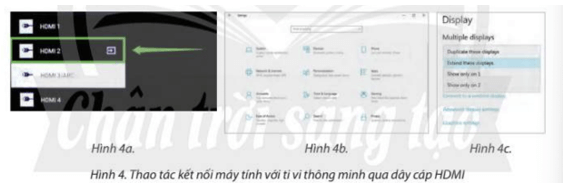 Câu 3: Khi kết nối máy tính với tivi thông minh qua cáp HDMI, cần phải làm gì trên máy tính để chia sẻ màn hình?