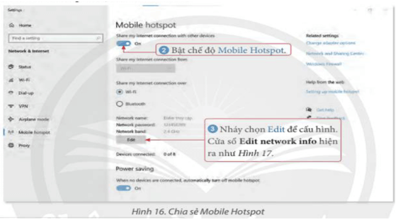 d) Đúng. Trên Windows 10, để chia sẻ Mobile Hotspot, người dùng cần chọn Edit để đặt tên và mật khẩu cho điểm truy cập.