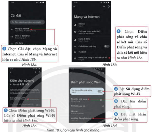 Câu 6: Trên thiết bị thông minh, để kích hoạt điểm phát sóng wifi, bạn cần chọn: