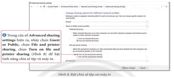 C. Nhấn “Save Changes” trong cửa sổ Advanced sharing settings