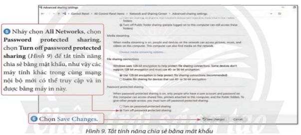 Câu 9: Để tắt tính năng chia sẻ bằng mật khẩu trên Windows, bạn cần chọn: