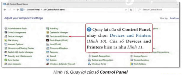 A. Đặt tên máy in trong cửa sổ Devices and Printers