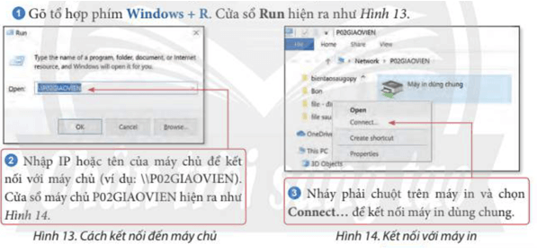 Để sử dụng máy in dùng chung cần xác định tên máy hoặc địa chỉ IP của máy chủ.