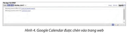 Giải thích: Công cụ Calendar được sử dụng để chèn lịch biểu vào trang web, cho phép hiển thị các sự kiện từ tài khoản Google Calendar.