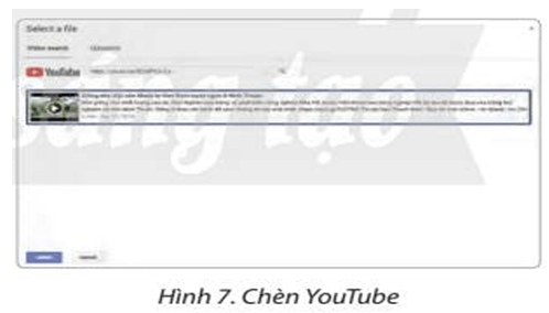 - Chọn mục Video search, nhập tên video trực tiếp trên thanh tìm kiếm hoặc nhập đường link YouTube và chọn Select để chèn video vào trang web (Hình 7).