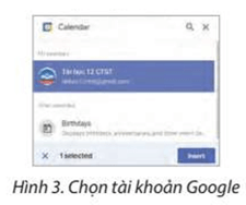 Chọn Insert > Công cụ Calendar, Chọn tài khoản Google muốn hiển thị lịch biểu (hình 3)