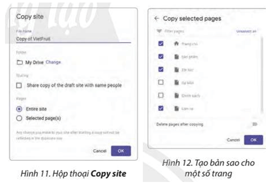 - Tại hộp thoại Copy site (Hình 11), có các tùy chọn: