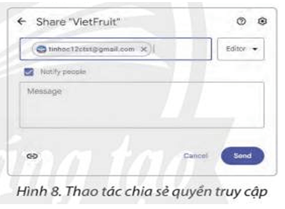 - Chọn Send để cấp quyền truy cập với địa chỉ email đã nhập.