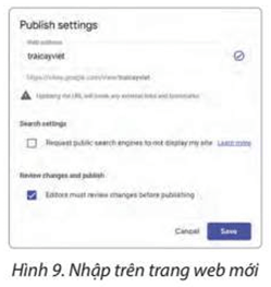 - Tại hộp thoại Publish settings, nhập tên mới “traicayviet” ở mục Web address và nháy chọn Save (Hình 9).