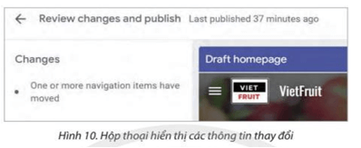Giải thích: Để xem trước các thay đổi và xuất bản lại trang web, bạn cần nháy chọn "Review changes and publish".