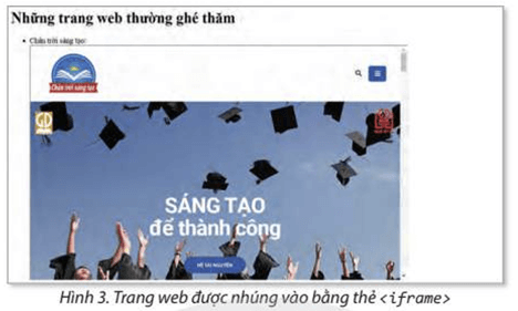 Thẻ <iframe) được dùng để nhúng trang web khác vào trang web hiện tại. Thuộc tính src dùng để chỉ định đường dẫn của trang web cần nhúng, thuộc tính width và height dùng để chỉ định chiều rộng và chiều cao của khung.