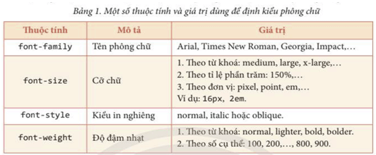 1. Những thuộc tính kiểu cho màu sắc và phông chữ