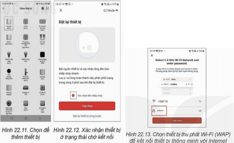 Thiết lập mạng: Sau khi kết nối gần thành công, dùng phần mềm để kết nối thiết bị với mạng cục bộ và router.