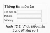 Yêu cầu: Tạo biểu mẫu để nhập thông tin các món ăn (Hình 12.2). Hướng dẫn: