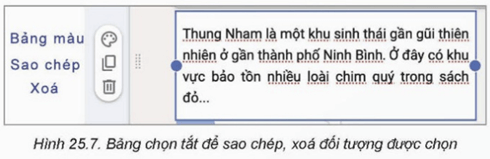 - Quan sát bảng chọn tắt với các nút lệnh (sao chép) và (xoá).