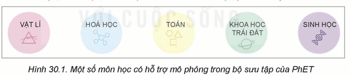 Giải thích: PhET cung cấp mô phỏng trong các lĩnh vực khoa học như Vật lý, Hóa học, Toán học, Khoa học Trái Đất, và Sinh học.