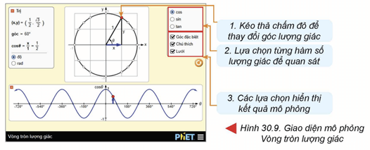 Bước 3. Nháy chuột chọn mô phỏng Vòng tròn lượng giác (Hình 30.6).