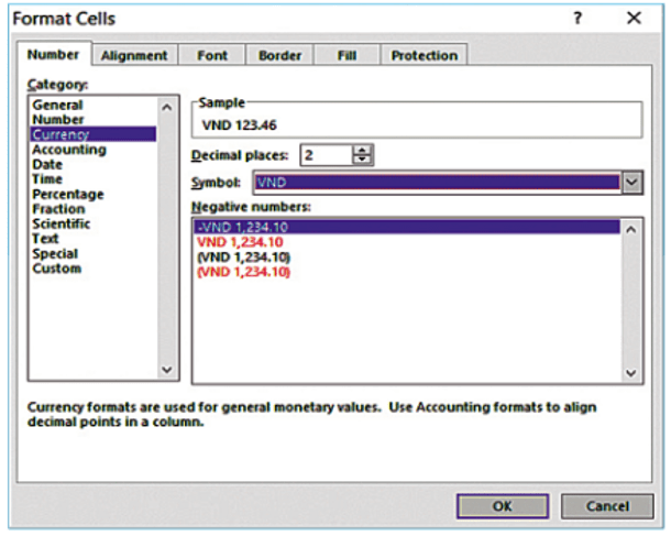 Hình 5.1: Định dạng hiển thị theo đồng tiền Việt Nam
