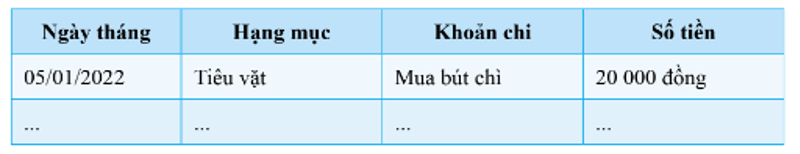 Bước 1. Tạo lập Bảng theo dõi từng khoản chi có các cột theo thiết kế.