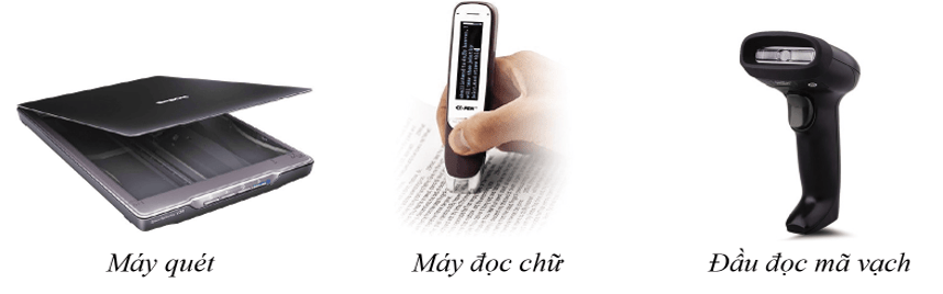 Các thiết bị: Máy quét, máy đọc chữ, đầu đọc mã vạch là các thiết bị vào.