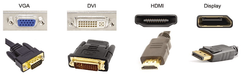 Máy tính thường có sẵn một số cổng xuất hình ảnh có dạng khác nhau để dễ dàng phân biệt. Các loại cổng xuất hình ảnh như: VGA, DVI, HDMI và Display.