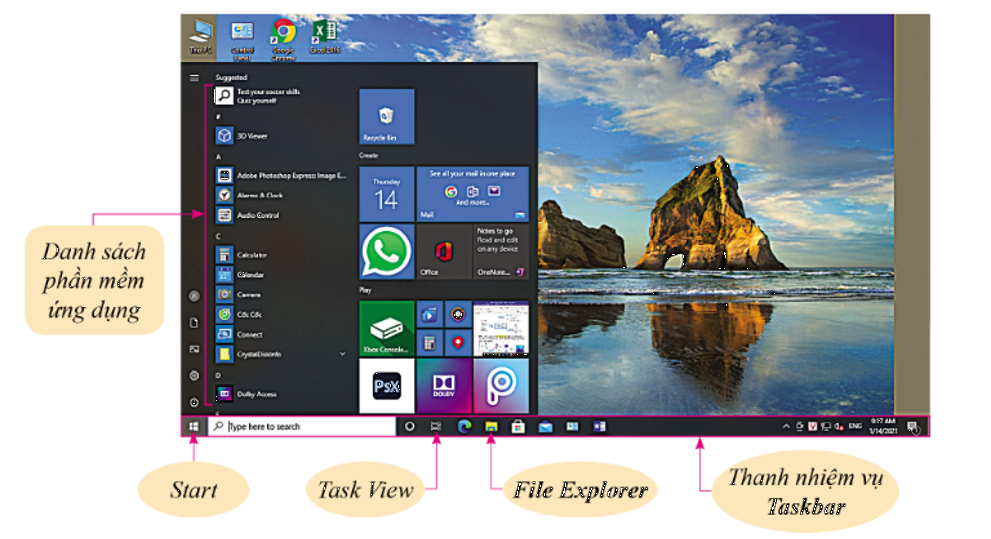 Hình 4.3: Minh họa một số chức năng của hệ điều hành Windows 10
