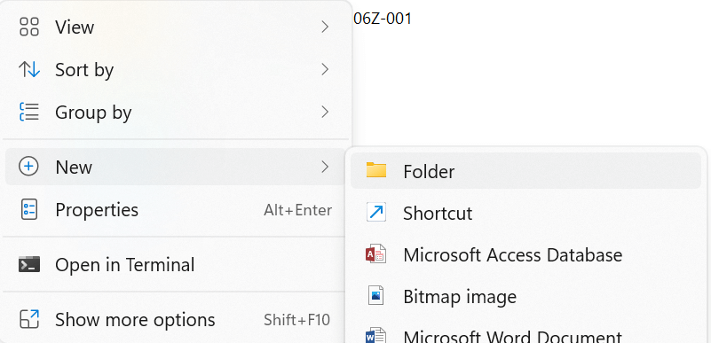 Bước 3. Nháy chuột phải chọn New sau đó chọn Folder. (Hình 1)