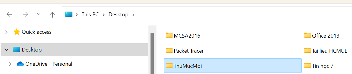 Bài 1: Tạo thư mục mới tên là ThuMucMoi trên màn hình nền Desktop và thư mục ThuMucTam nằm trong thư mục Documents.