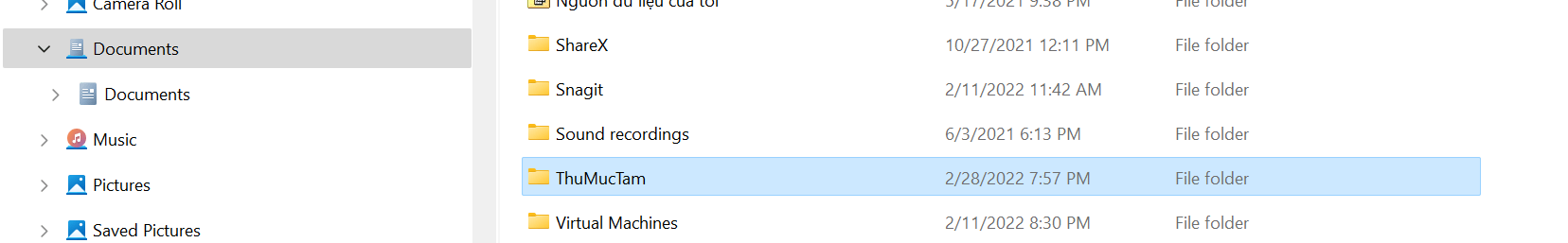Nhiệm vụ 2. Di chuyển ThuMucMoi thành thư mục con của Documents.