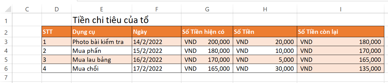 Ví dụ: Thao tác tự động điền công thức theo mẫu với số liệu trong Hình 2.
