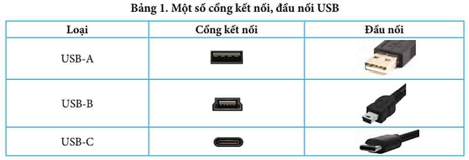 - USB (Universal Serial Bus): dùng kết nối chuột, bàn phím, loa, màn hình, … Có 3 loại phổ biến là USB-A, USB-B và USB-C.