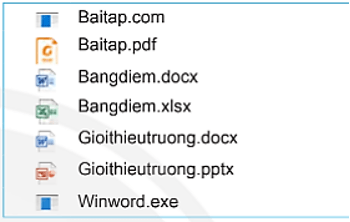 Câu 1. Cùng với việc hiển thị tên tệp, hệ điều hành làm gì để giúp người dùng dễ nhận biết cách xử lí tệp?