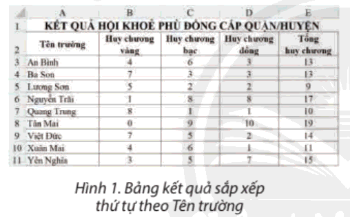 - Dưới đây hướng dẫn các bước sắp xếp bảng ở Hình 1 theo thứ tự ưu tiên lần lượt là: huy chương vàng, huy chương bạc, huy chương đồng.