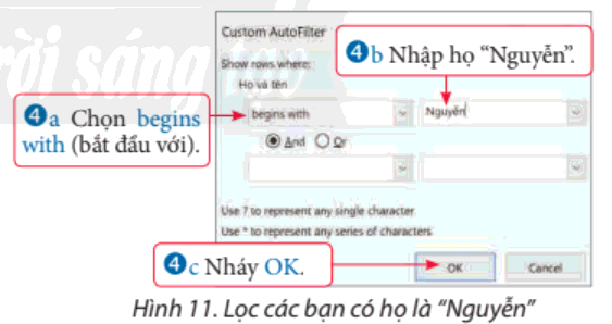+ Trong cửa sổ Custom AutoFilter mở ra, thực hiện các bước như ở Hình 11.