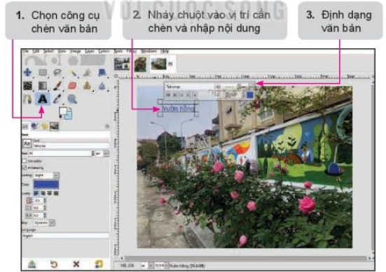 Chèn dòng chữ “Vườn hồng” vào ảnh như hình ở 1.1.
