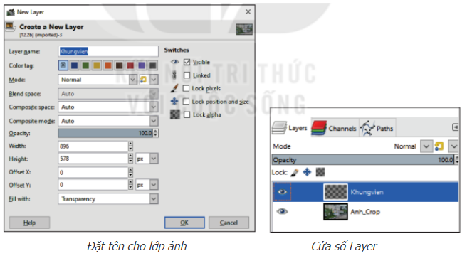 - Tạo một lớp mới bằng cách chọn Layer/New Layer, nhập tên cho lớp này là Khungvien. Chọn OK để hoàn thành. Trên cửa sổ Layer sẽ xuất hiện thêm lớp Khungvien.