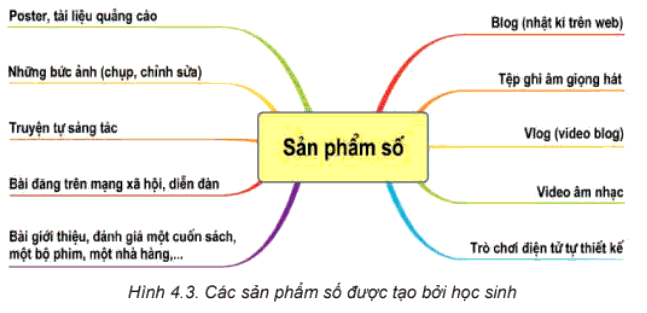 Có nhiều dạng sản phẩm số mà em có thể tạo ra (Hình 4.3), đáp ứng sở thích cũng như nhu cầu học tập, kết nối bạn bè.