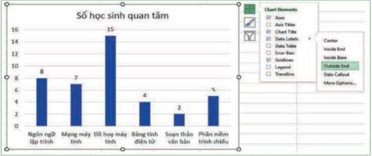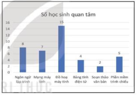 Tạo biểu đồ cột so sánh trực quan số học sinh quan tâm các nội dung Tin học.