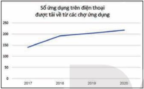 Ví dụ: Biểu đồ đoạn thẳng cho thấy số lượng ứng dụng được tải về từ các chợ ứng dụng từ năm 2017 đến 2020 có xu hướng tăng dần.
