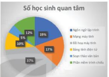 Ví dụ: Biểu đồ hình quạt so sánh tỉ lệ phần trăm số học sinh muốn tìm hiểu thêm mỗi nội dung Tin học trên tổng số học sinh khảo sát.