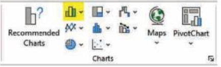 - Bước 3. Trong thẻ Insert, tại nhóm Charts, chọn lệnh Insert Column or Bar Chart , danh sách các loại biểu đồ sẽ xuất hiện.
