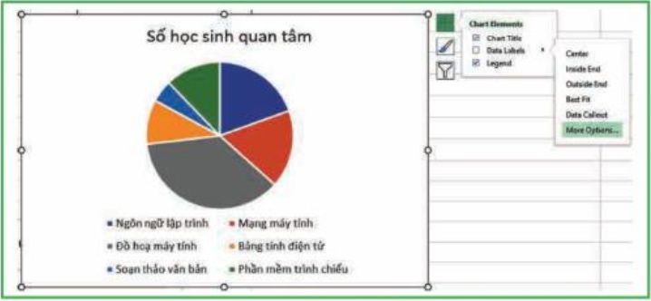 Lưu ý: Trong danh sách thông tin ở nút lệnh Chart Elements, em hãy chọn thêm các lệnh khác và quan sát sự thay đổi của biểu đồ.